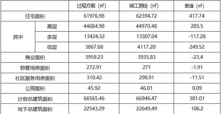 1.地下总建筑面积增加106.2㎡,计容面积增加381.01㎡,住宅面积增加417.74㎡,物管用房减少1.91㎡、社区服务用房减少11.51㎡、公厕增加0.09㎡。