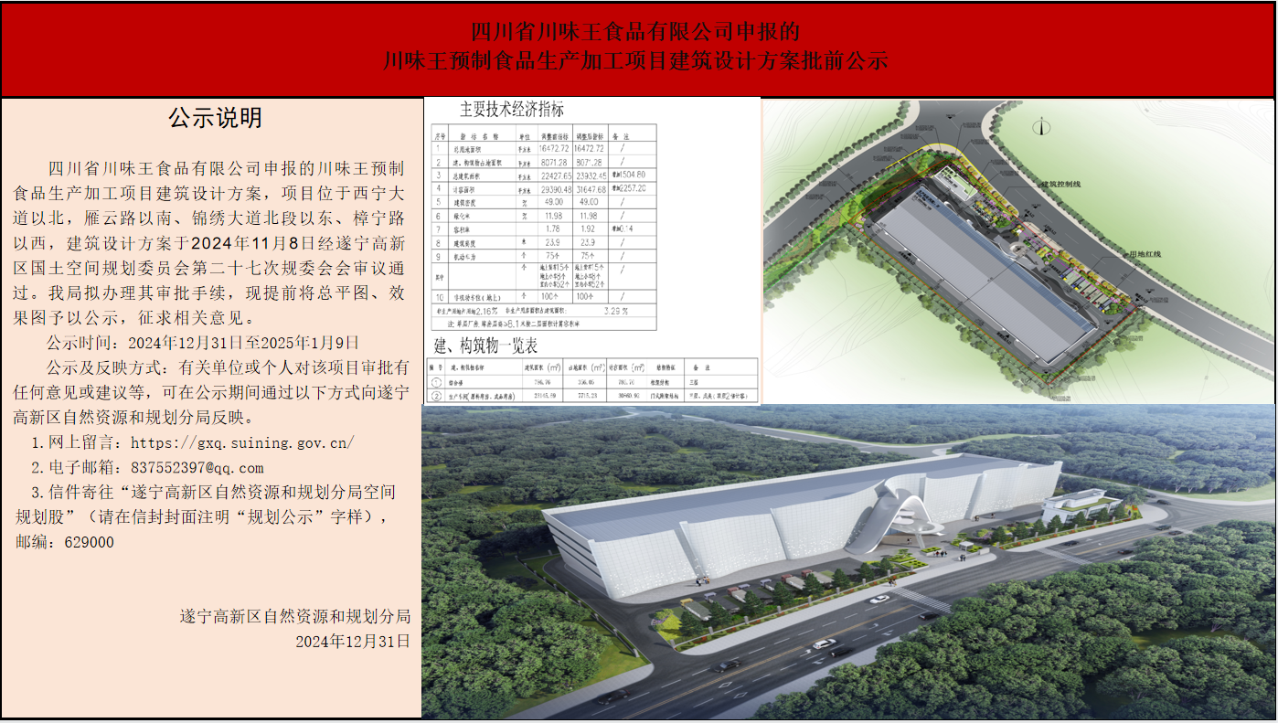 川味王预制食品生产加工项目建筑设计方案批前公示