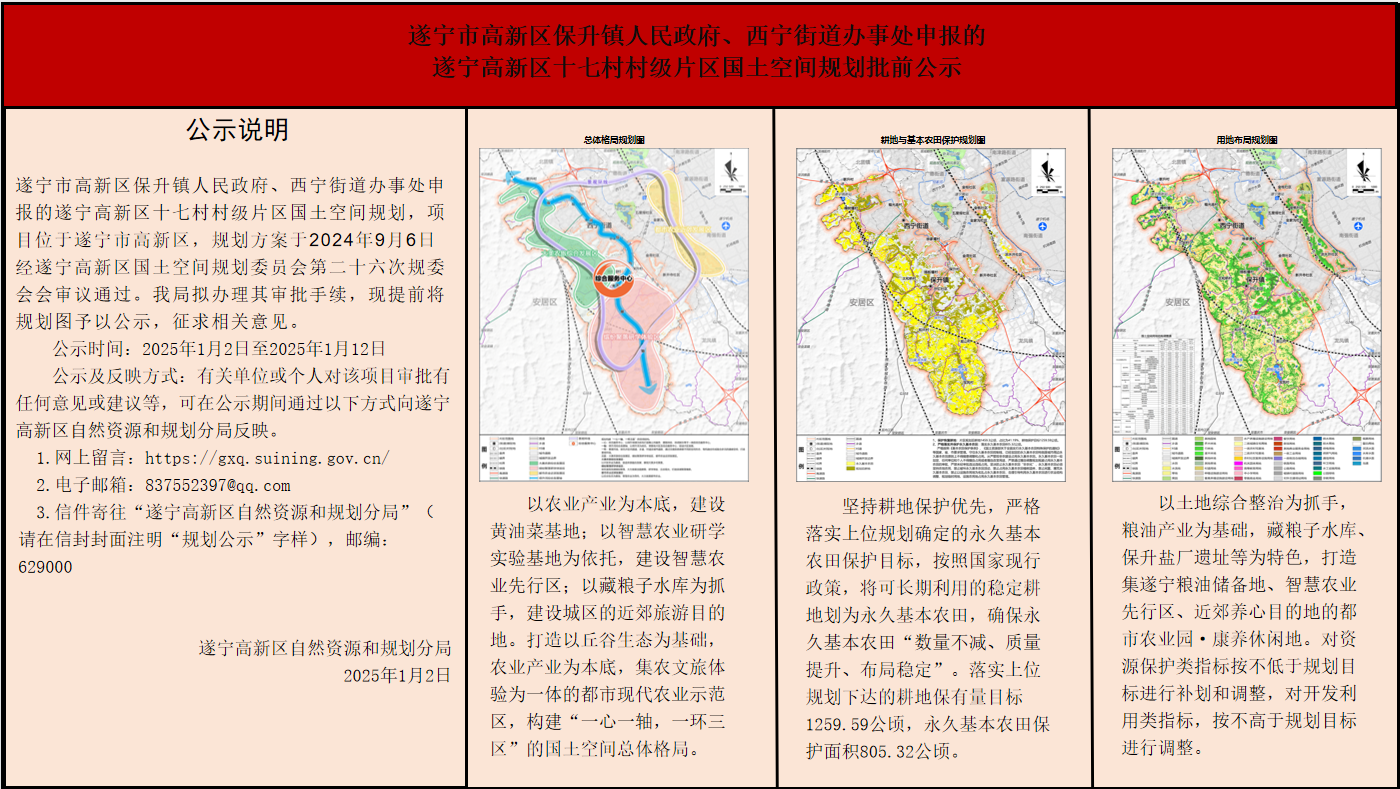 遂宁高新区十七村村级片区国土空间规划批前公示