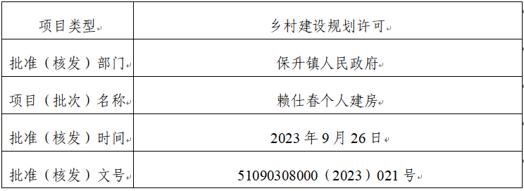 关于办理赖仕春个人建房乡村建设规划许可证的公示