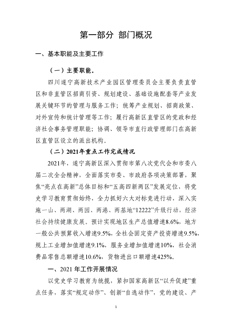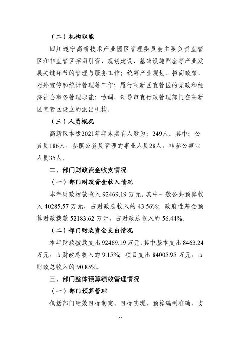 2021年度遂宁高新技术产业园区管委会部门决算