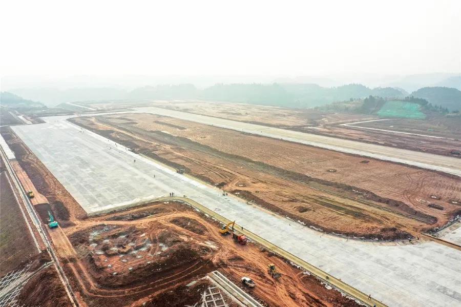 12月23日,记者在遂宁(南坝)机场迁建项目现场看到,施工人员正在进行跑道及配套设施施工。
