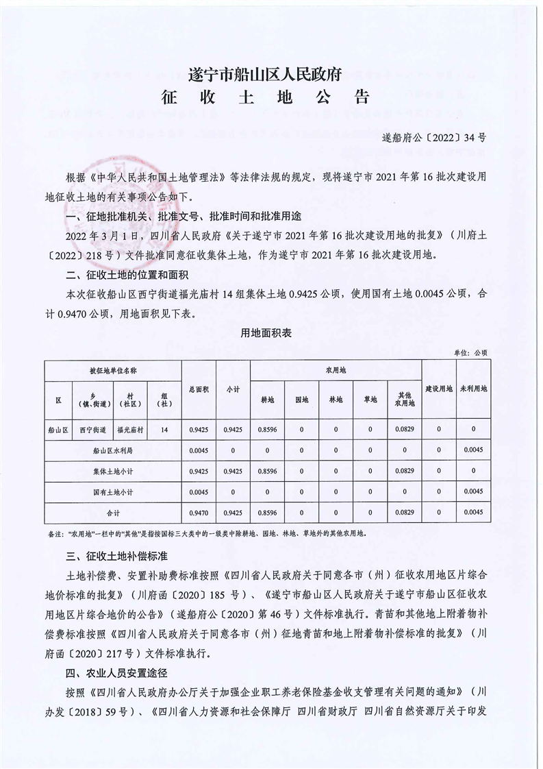 遂宁市船山区人民政府征收土地公告(2021年第16批次)