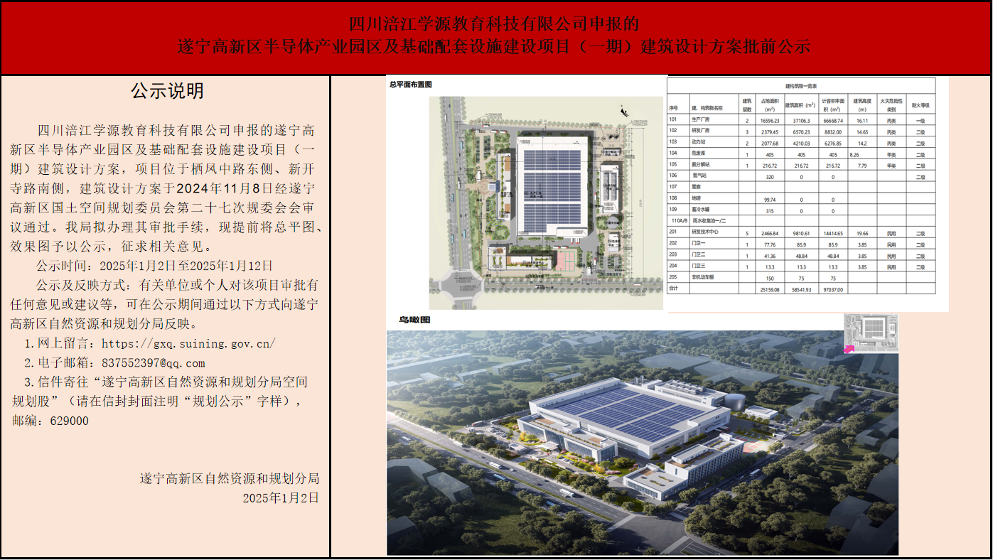 遂宁高新区半导体产业园区及基础配套设施建设项目(一期)建筑设计方案批前公示