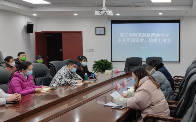近日,遂宁高新区建设交运局联合市交通综合执法支队高新大队,召开道路运输企业岁末年初安全、防疫工作会。50余家道路运输企业参加会议。