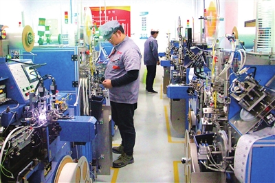 近日,在四川华瓷科技有限公司生产车间,记者看到,工业机器人正在进行印刷内电极的制作,用于产品测试的四轨道测试机设备也在高速运转……14道生产工序,每个生产环节都有工人坚守,生产场面忙碌而有序。