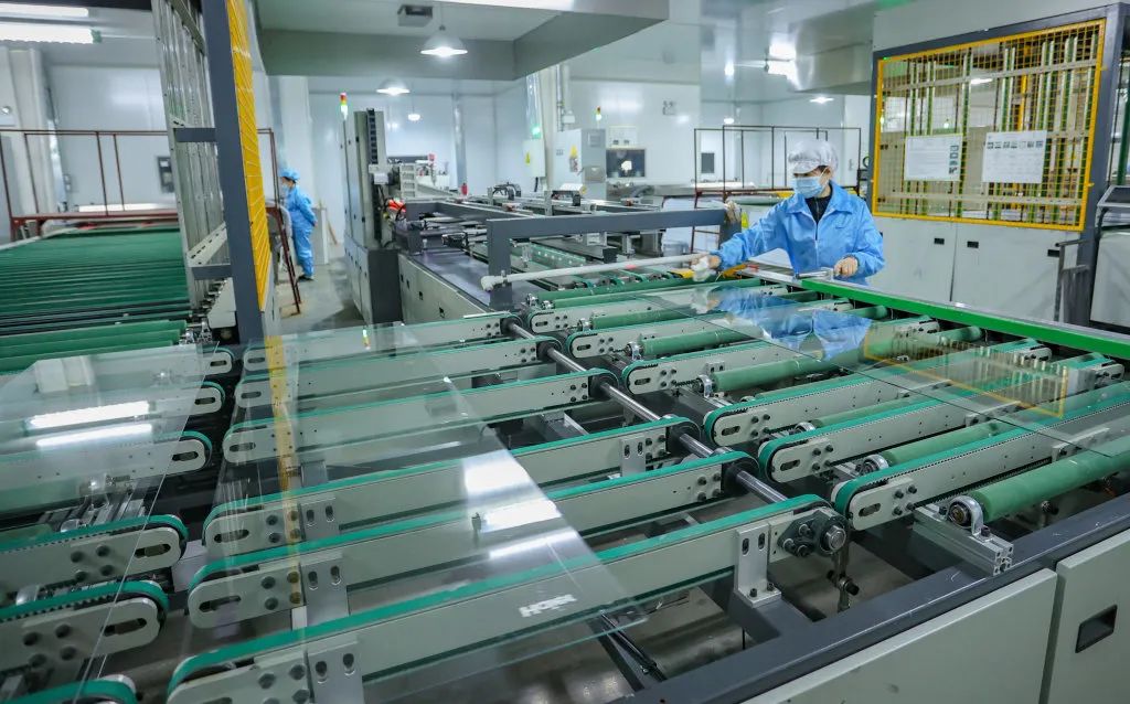 3月2日,遂宁高新区秀强智能玻璃深加工车间内,工人在智能化生产线上忙碌。据悉,该企业今年开始投产,主要生产彩晶玻璃,为海尔、美菱、海信等企业提供产品,目前已实现满负荷生产,年生产预计可达15万平方米彩晶玻璃,能满足西南片区供应。
