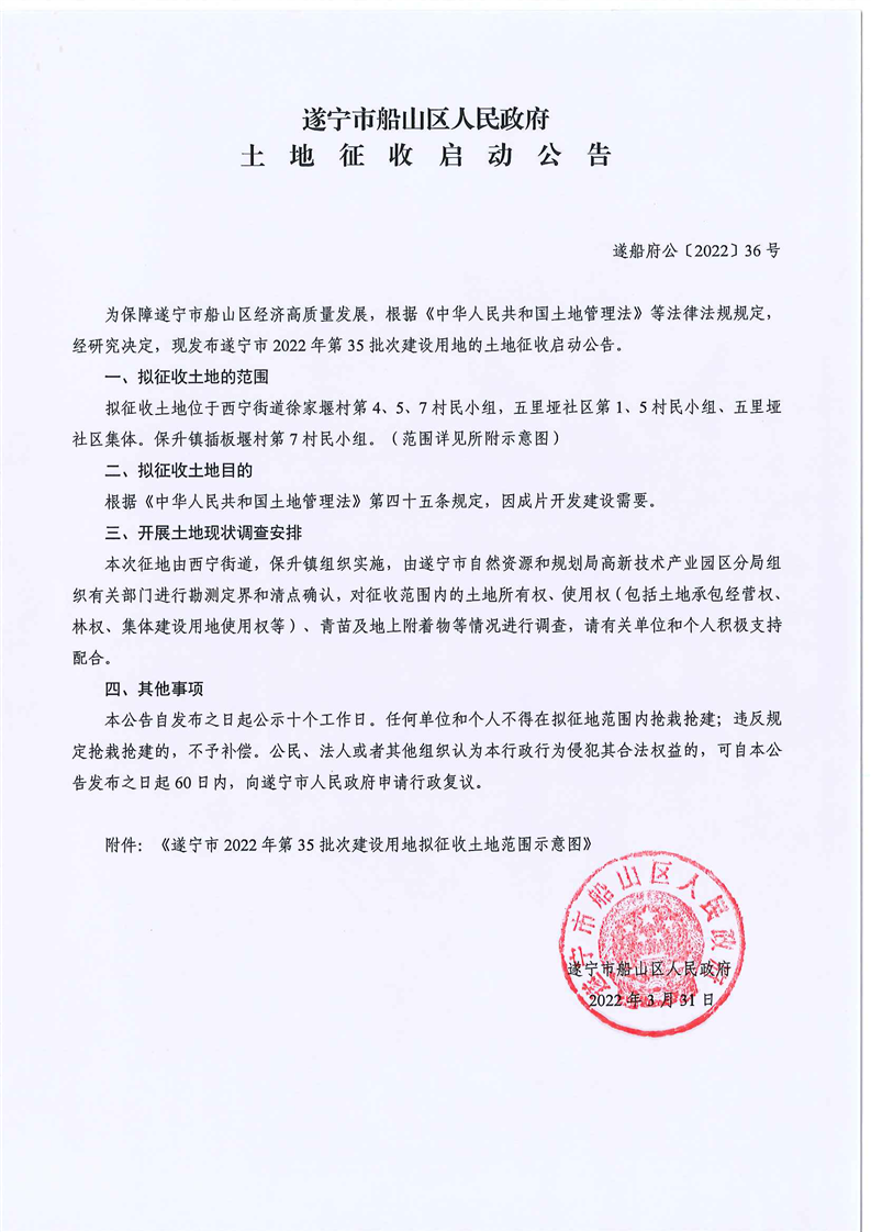 遂宁市船山区人民政府土地征收启动公告(2022年第35批次)