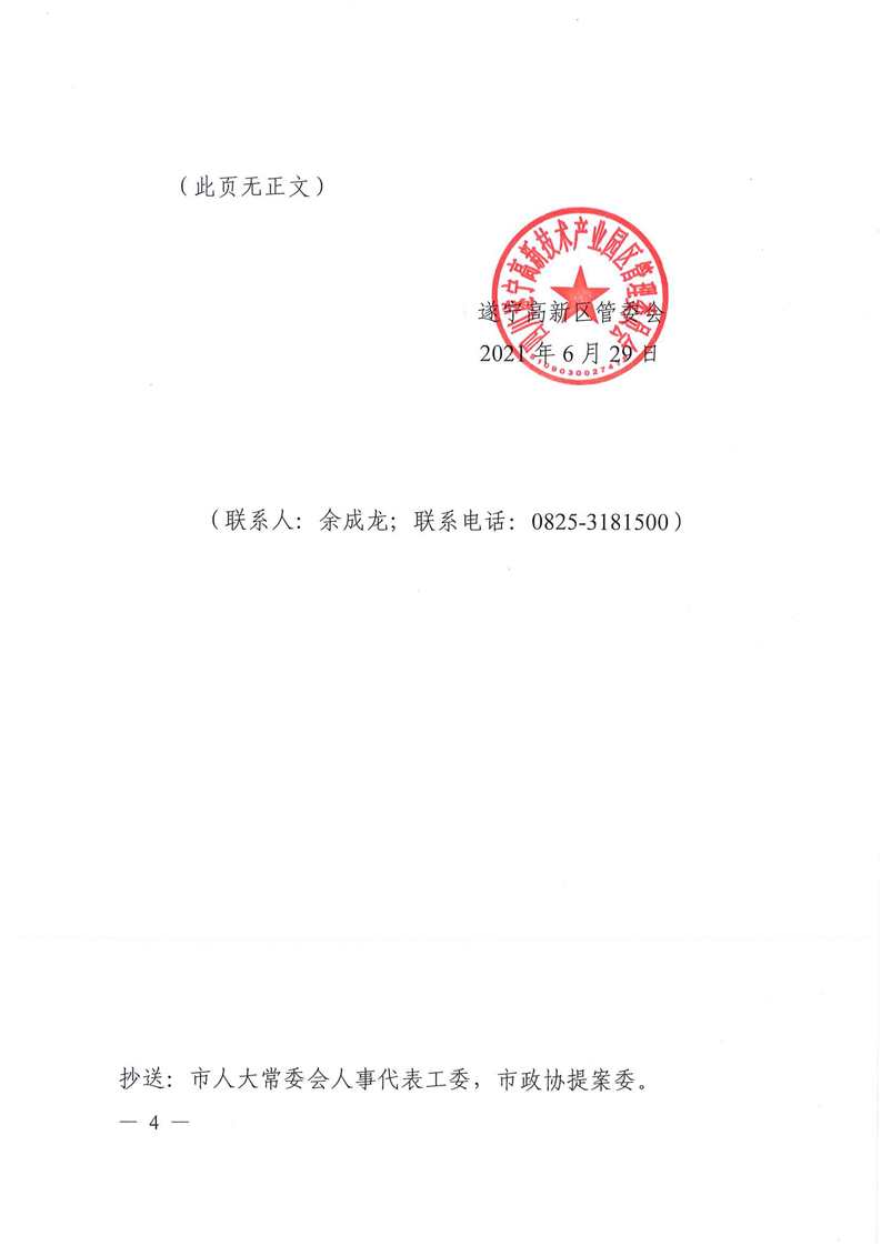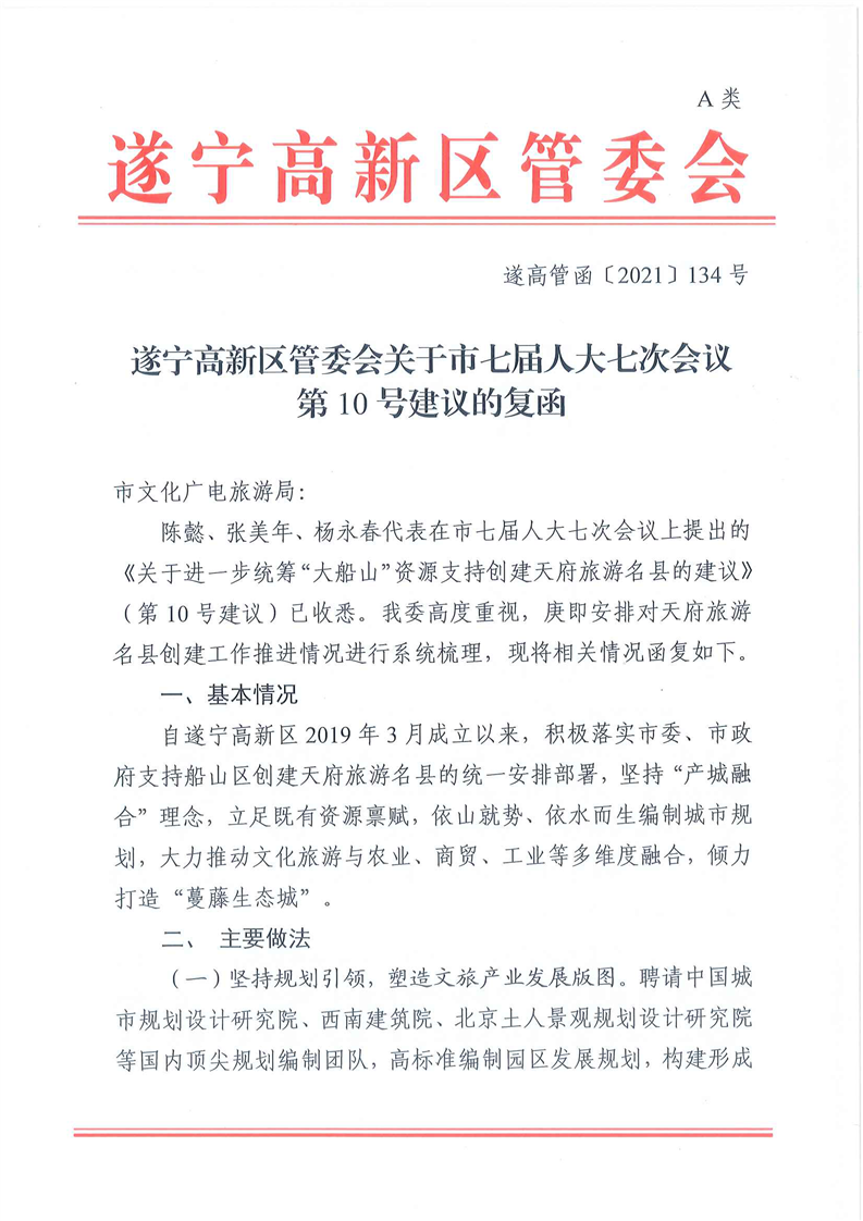 关于市七届人大七次会议第10号建议的复函(遂高管函〔2021〕134号)