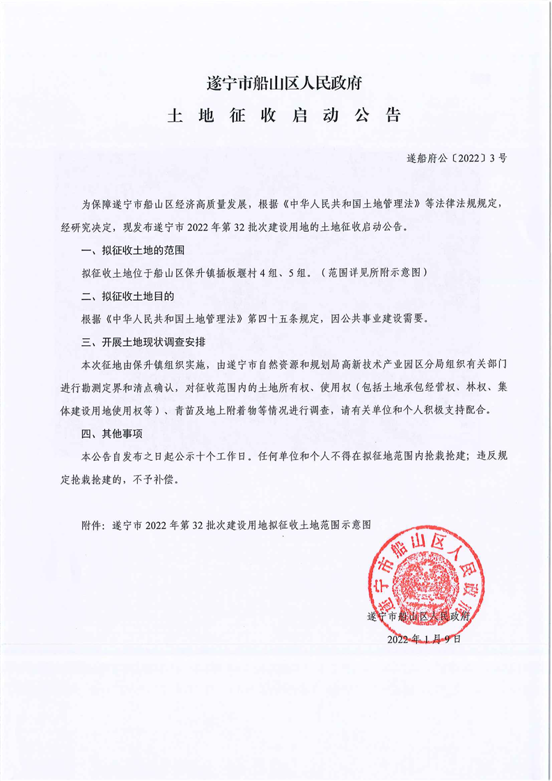 遂宁市船山区人民政府土地征收启动公告(2022年第32批次)