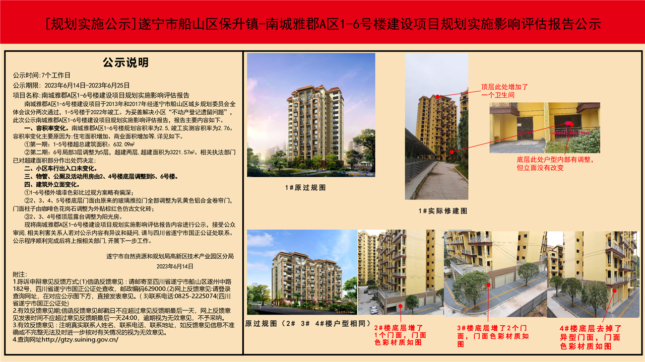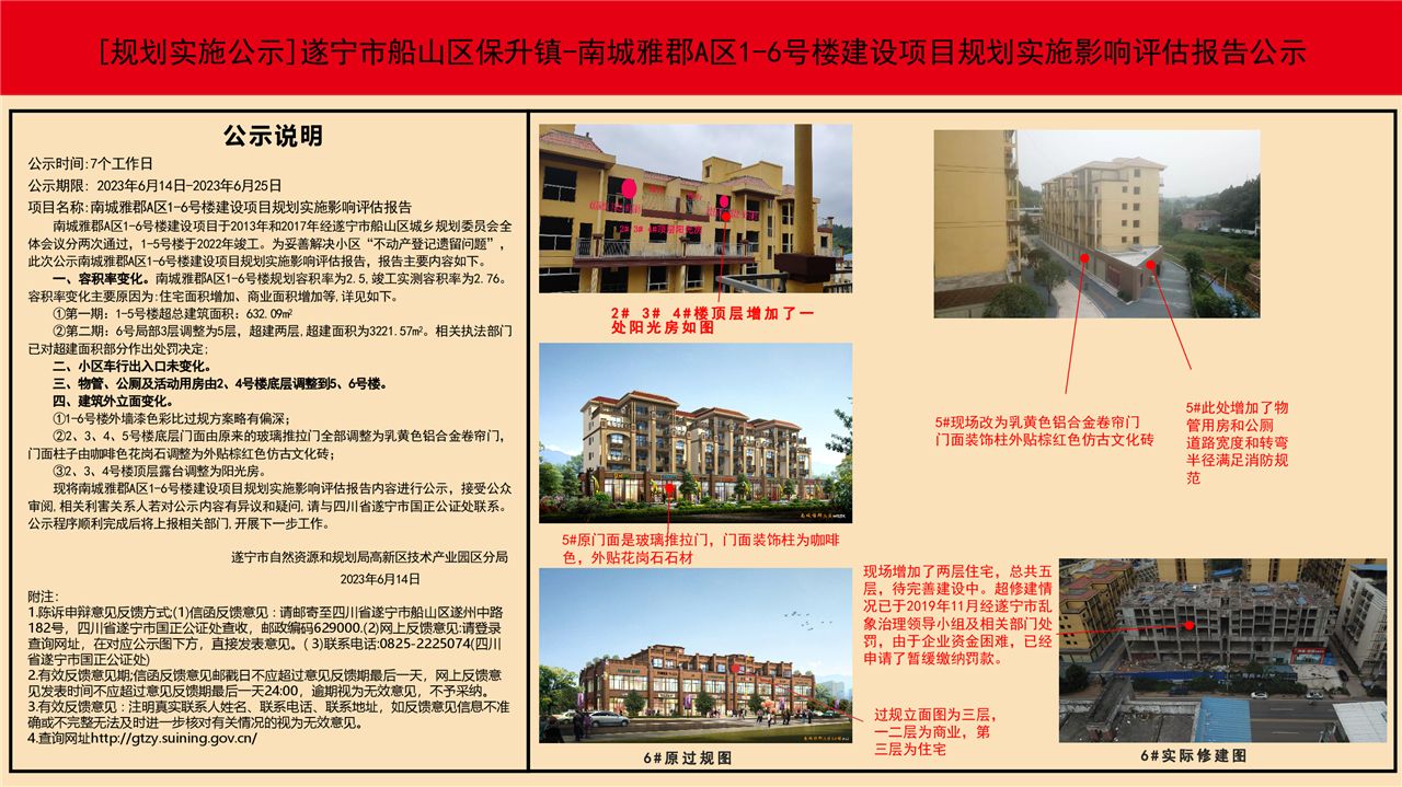 遂宁市船山区保升镇—南城雅郡A区1—6号楼建设项目规划实施影响评估报告公示